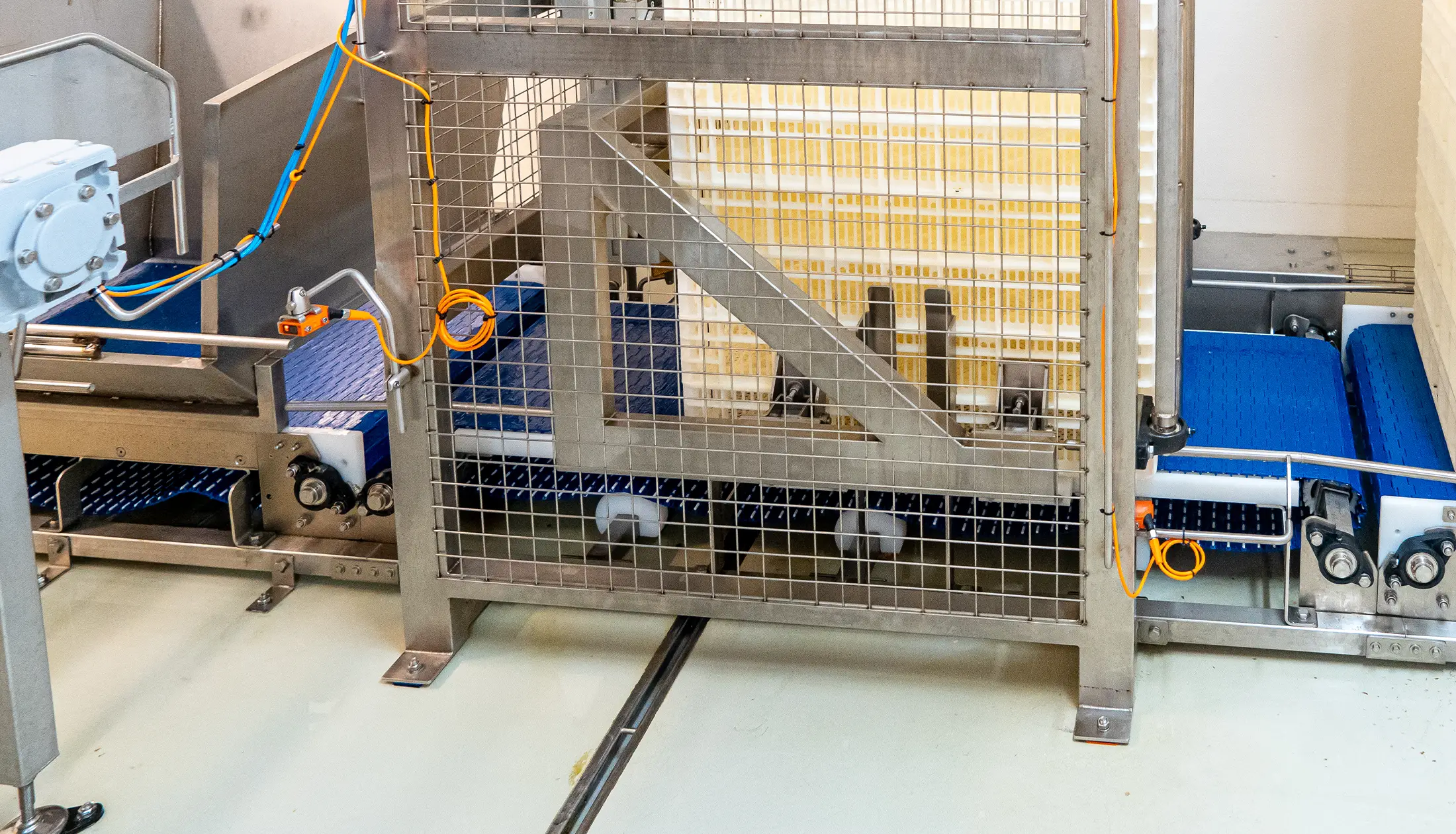 De volledige installatie is geëngineerd met een kantelaar die de kratten flipt zodat de eierdoppen uit de kratten vallen. Een RVS hygiënisch transportsysteem naar de wasruimte. Een ABB robot met toolhead voor het op- en afstapelen van kratten tot 16 hoog. Een koud water inweektunnel met een productiesnelheid van 30 minuten. Een Unifortes krattenwasser met een extra mid-pressure pomp. En een transportsysteem met een mechanische stapelaar achter de wasmachine waarna de kratstapels eenvoudig op trolleys gezet kunnen worden.